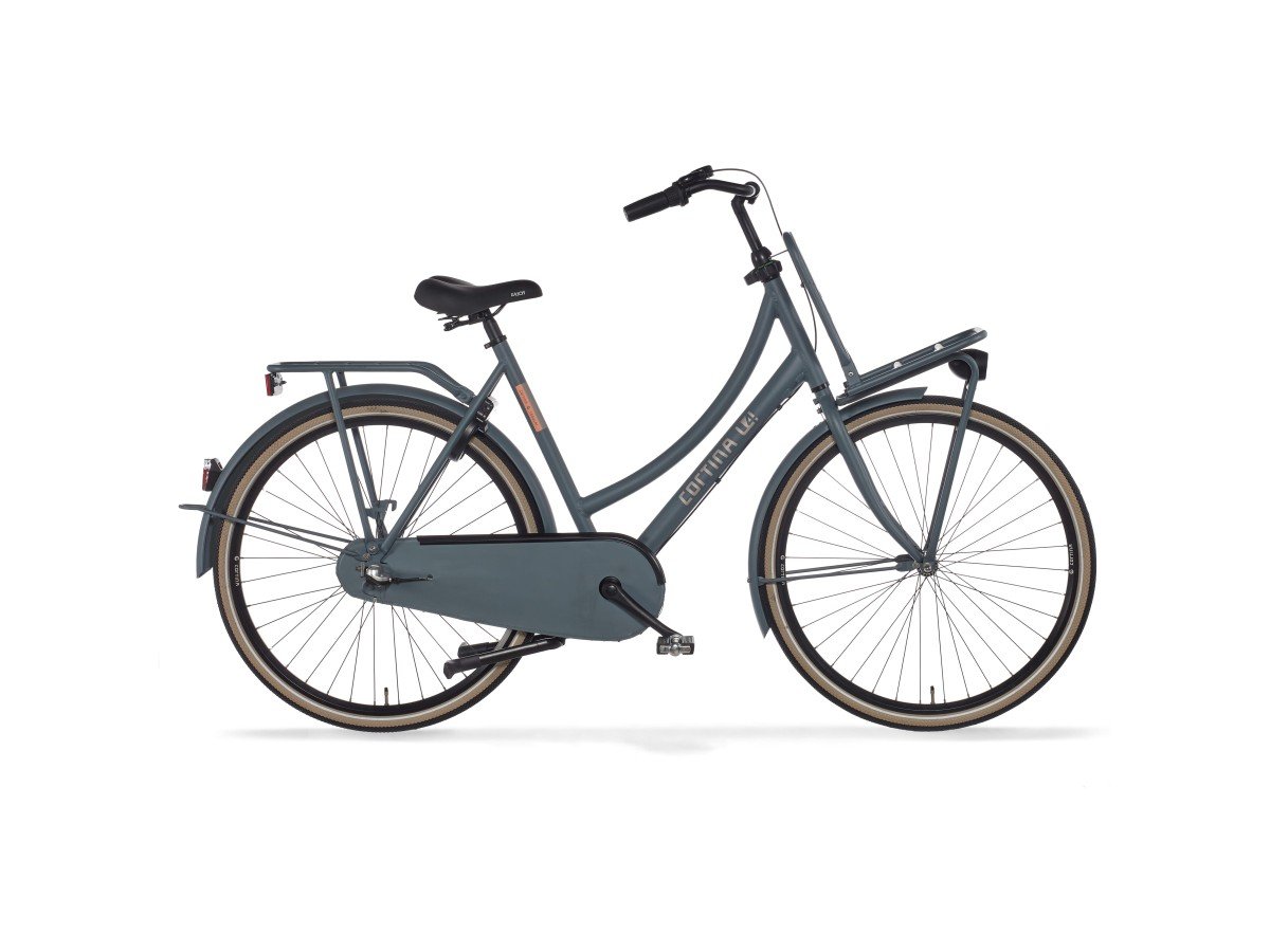 Cortina Transport U4 damesfiets in framemaat 57cm. Kleur: Mouse Grey Matte. Uitgerust met achter een Shimano Nexus 3-traps versnellingsnaaf met terugtraprem en voor een standaard naaf. Opvallende details: aluminium frame, stuurslot, voordrager. Kleurnummer: UGSW 77545 Matte.